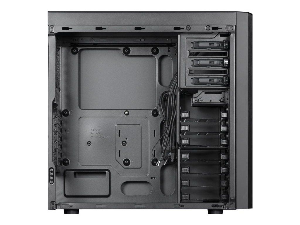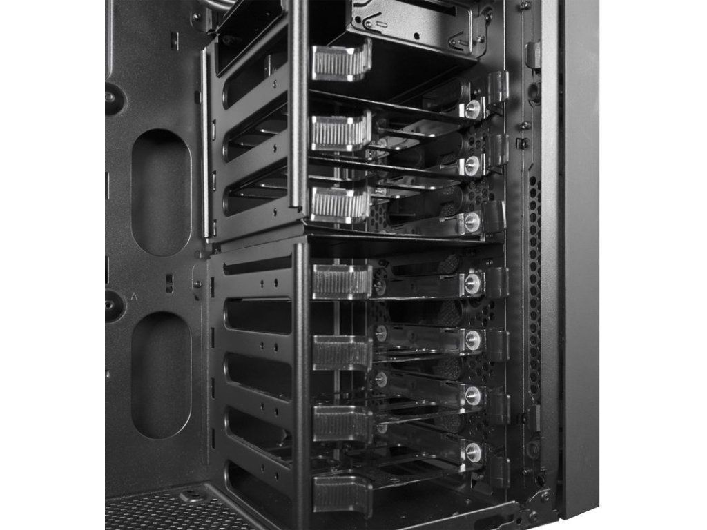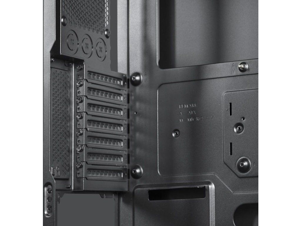 | Kompatibilita chladenia | Horná časť: 2x 120mm/140mm ventilátory alebo až 280mm radiátor (použitie 280mm radiátora blokuje prvý ODD disk) Predná časť: 2x 120mm ventilátory Zadná časť: 1x 120mm ventilátor Spodná časť: 1x 120mm alebo 140mm ventilátor (v závislosti od dĺžky PSU) |