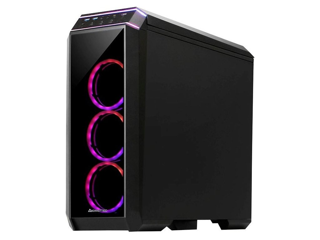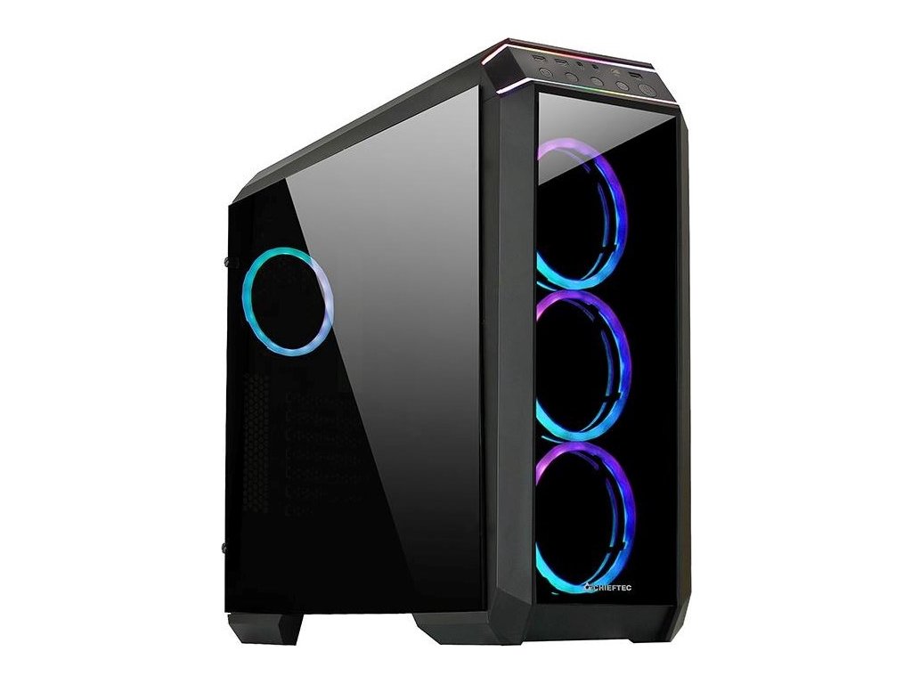 4 predinštalované 120 mm ventilátory RGB RAINBOW RING sú ovládané diaľkovým ovládaním, ktoré je súčasťou rozsiahleho "rozsahu dodávky". Prepracovaný dizajn interiéru umožňuje integráciu prídavného 360 mm chladiča vodného chladenia do prednej časti, takže táto druhá generácia herného puzdra Chieftec spĺňa a prekračuje očakávania každého hráča.