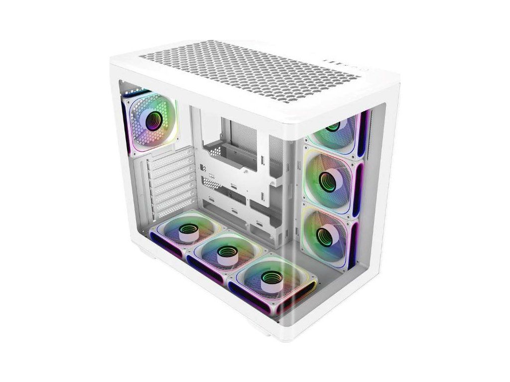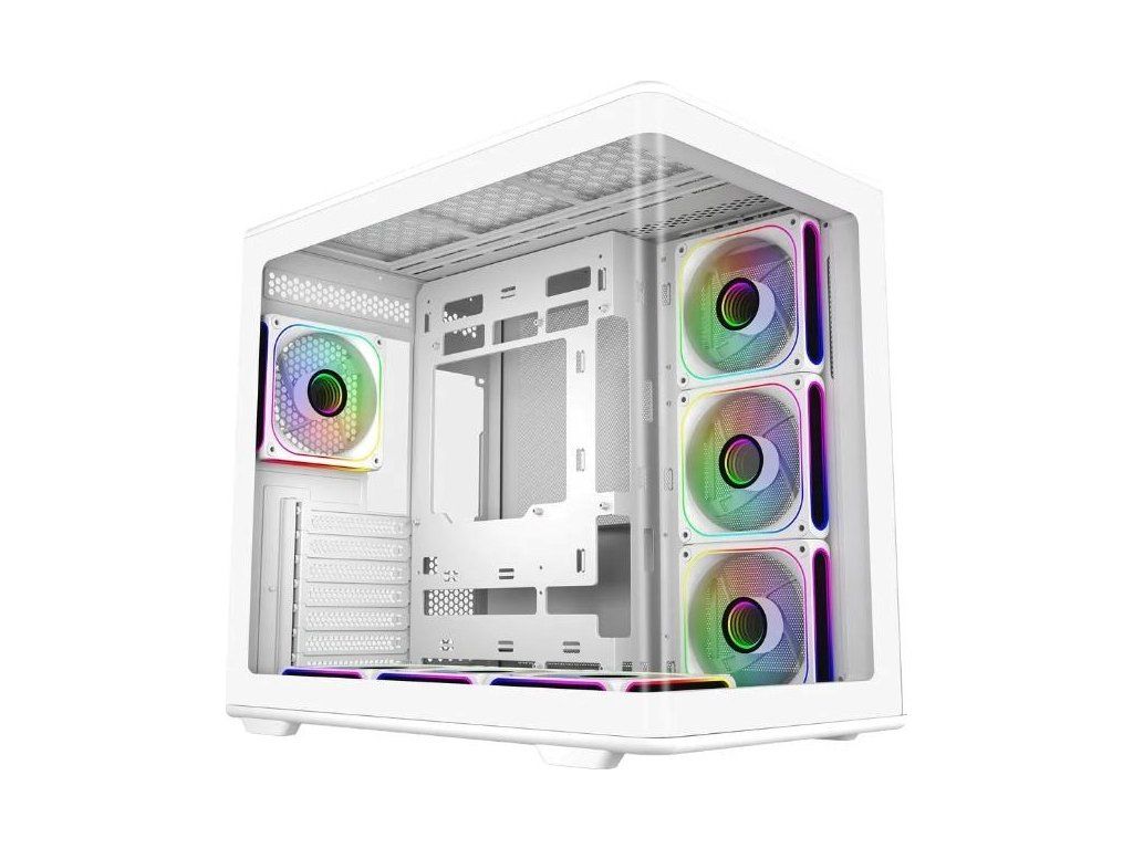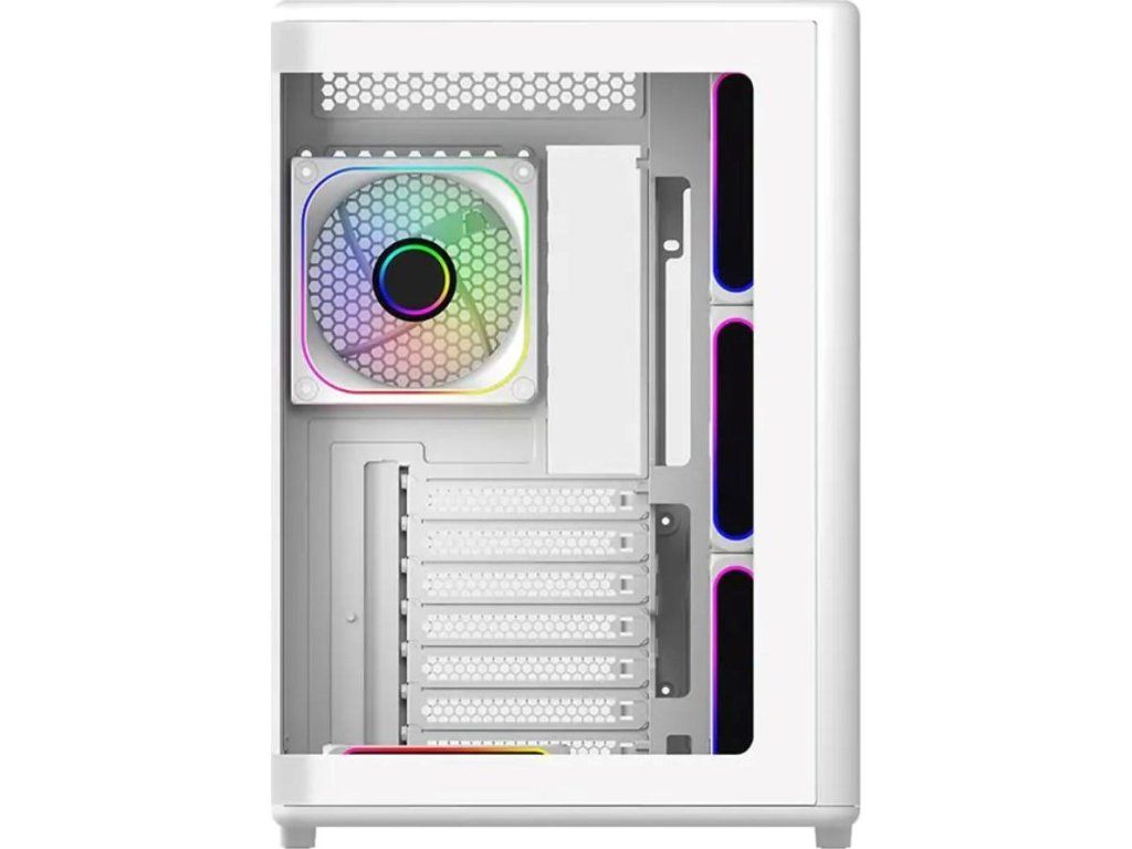 Prevedenie skrine:Midi Tower; Farba skrine:Biela; Počet pozícií 3.5" (HDD):2; Počet interných pozícií 2.5":2; Vybavenie PC skrinky:Predný Audio panel, Predný USB panel, Priehľadná bočnice