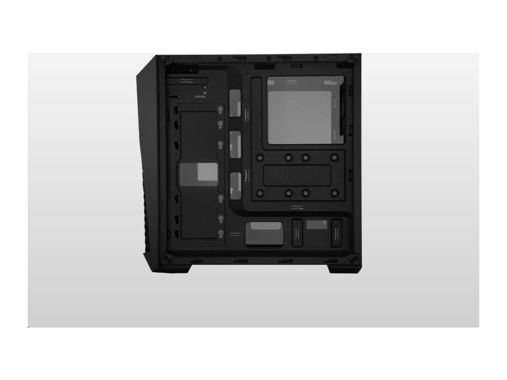 Základom nového MasterBoxu K501L je hranie hier. Osvetlený ventilátor na pozadí šikmého vetrania predného panelu vypovedá o jeho súťažnej stránke.