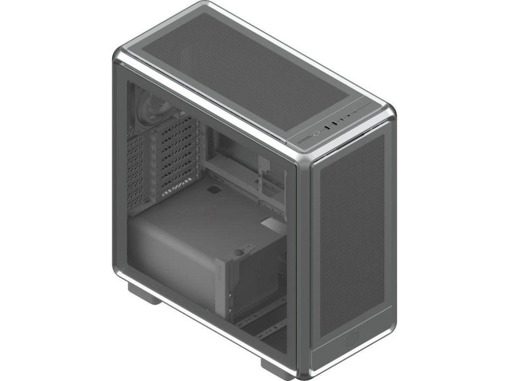 Cooler Master case MasterFrame 600 Mesh Silver ARGB, Průhledná bočnice, ATX, 2x 200mm ARGB Fan, 1x 120mm ARGB Fan, Šedá