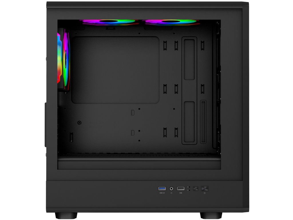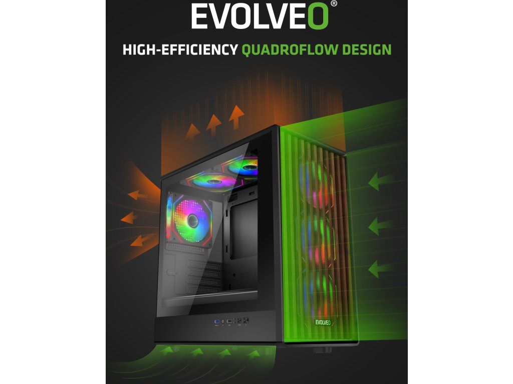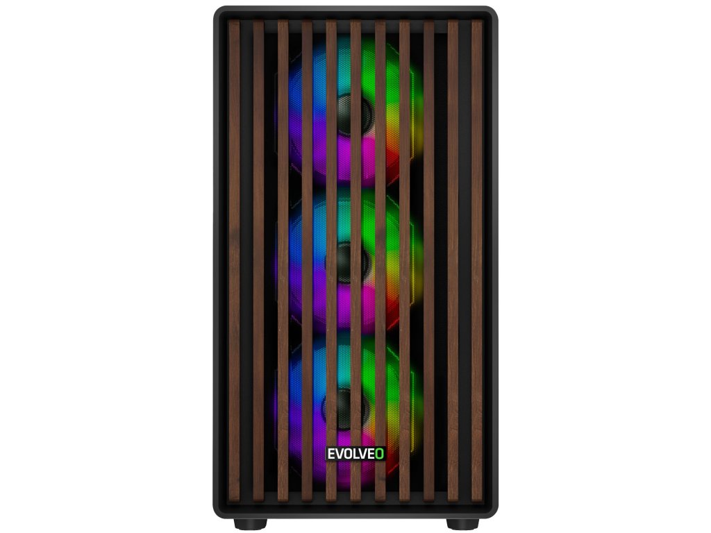 EVOLVEO Panthera, skříň mATX, 6x ARGB ventilátor 120mm, dřevěný přední panel + skleněná bočnice