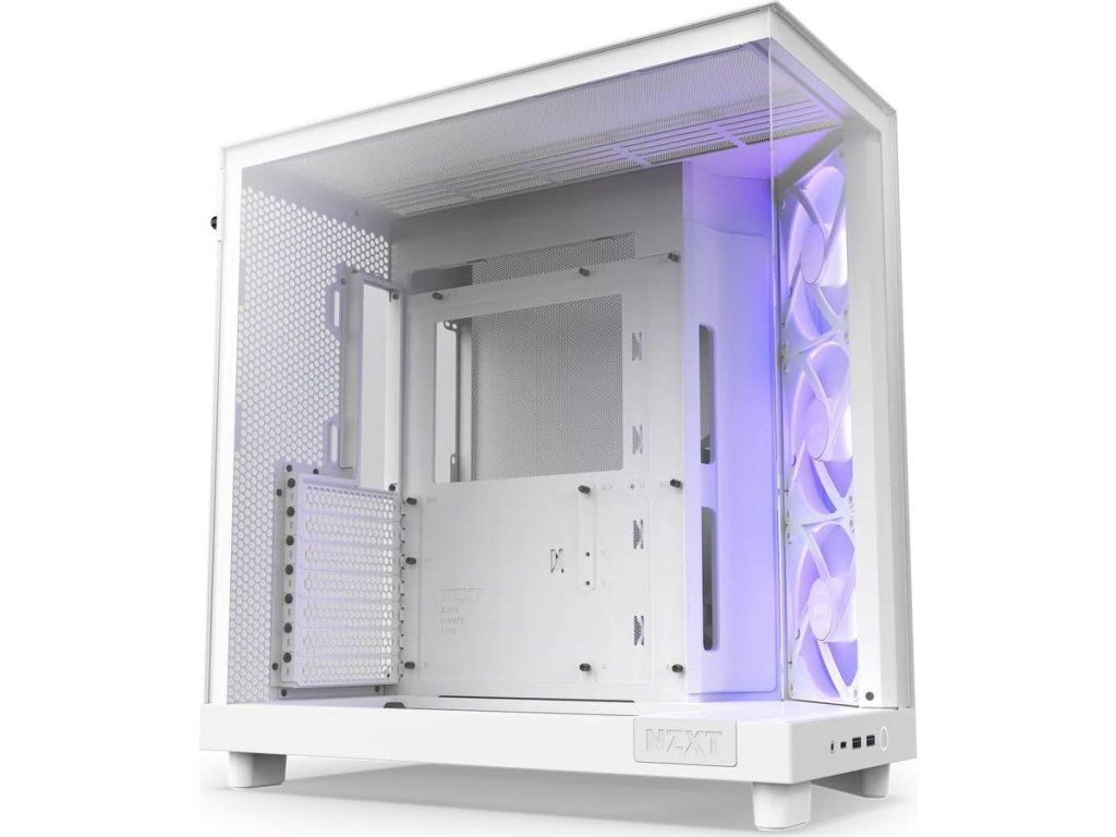 NZXT skříň H6 Flow RGB dvoukomorová / MidT / 3x120mm RGB fan / 2xUSB 3.2 / USB-C / prosklená / bílá