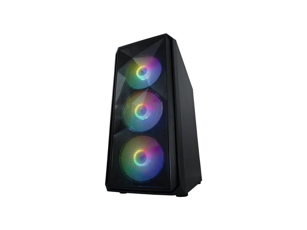 VeinX case ME19A Mid Tower, bez zdroje, 1x USB3.0, 1x USB2.0, 4x 120mm ARGB Fan, 1x ARGB Controller, černá