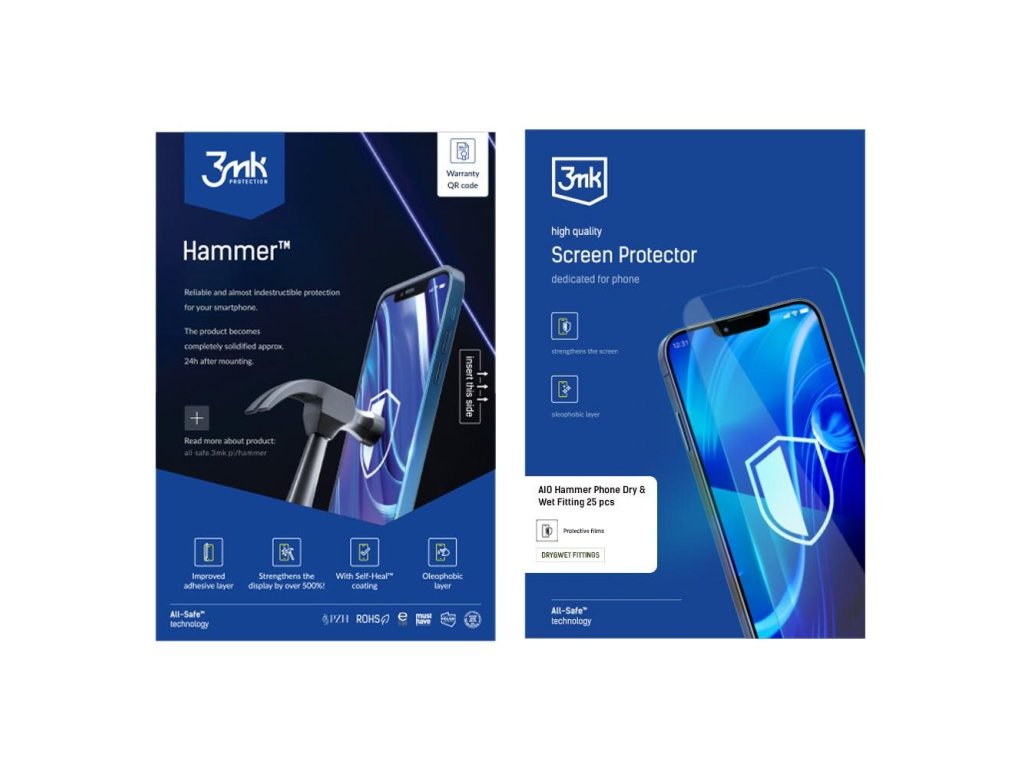 3mk All-Safe - AIO fólie Hammer Dry & Wet Fitting Phone, 25 ks
