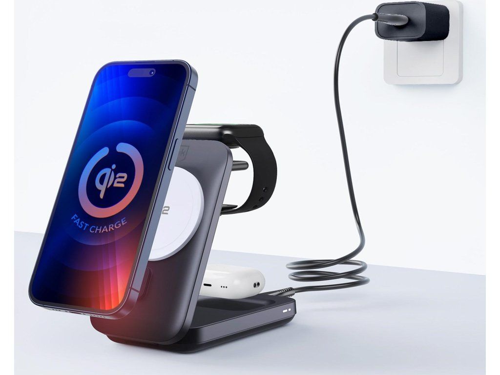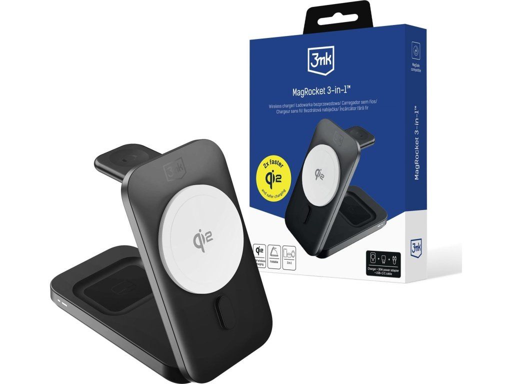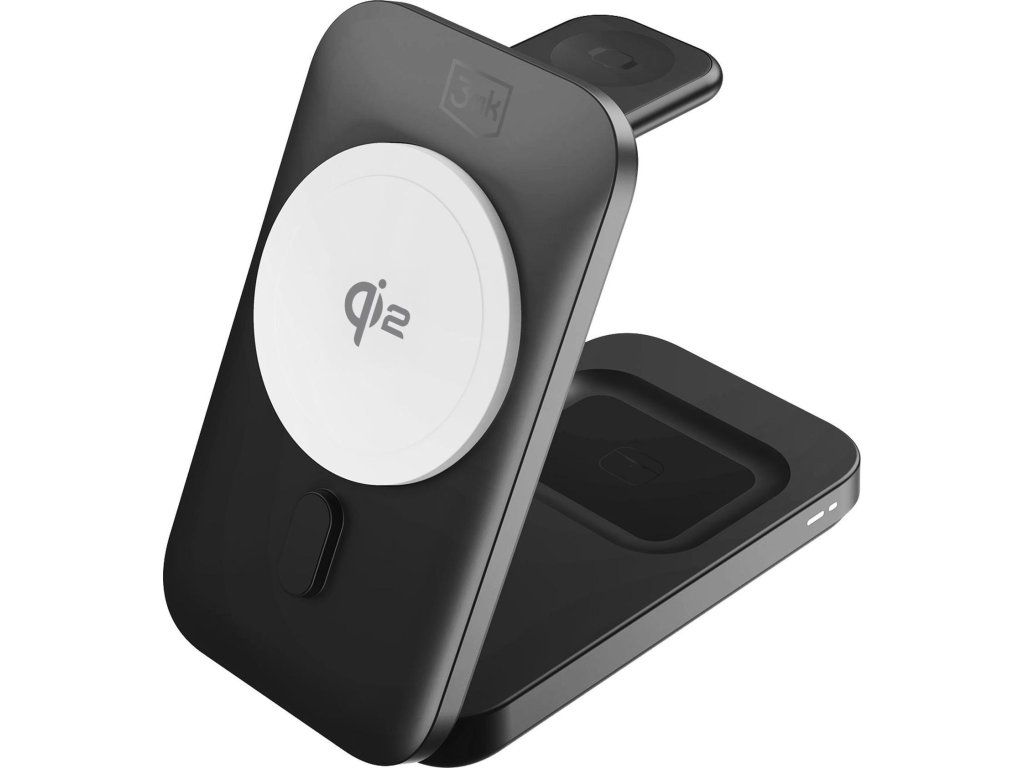 3mk bezdrátová nabíječka - MagRocket 3-in-1, technologie Qi2, 15W, černá