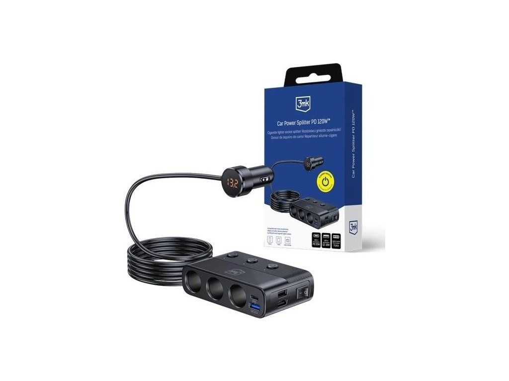 3mk Car Power Splitter PD 120W™ je nielen rozdvojka zásuviek do auta, ale aj pokročilé nabíjacie centrum, ktoré spĺňa potreby každého cestovateľa. Zariadenie ponúka riešenia, ktoré zvyšujú jeho všestrannosť a použiteľnosť v automobiloch. Vďaka technológiám Power Delivery (PD) a Quick Charge (QC) a výkonu 120 W (pre 12V inštalácie) alebo 240 W (pre 24V inštalácie) umožňuje 3mk Car Power Splitter PD 120W™ rýchle a bezpečné nabíjanie alebo napájanie rôznych zariadení - od smartphonov a tabletov až po GPS navigácie a kamery v aute.