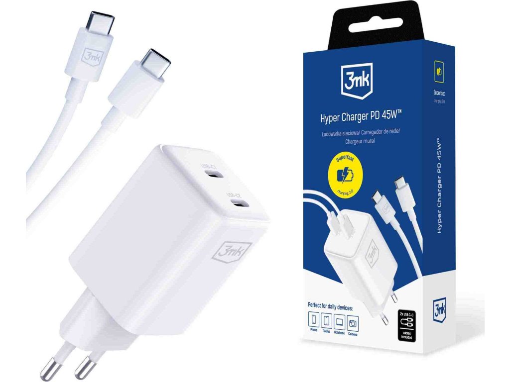 3mk Hyper Charger PD 45W+USB Cable C to C White