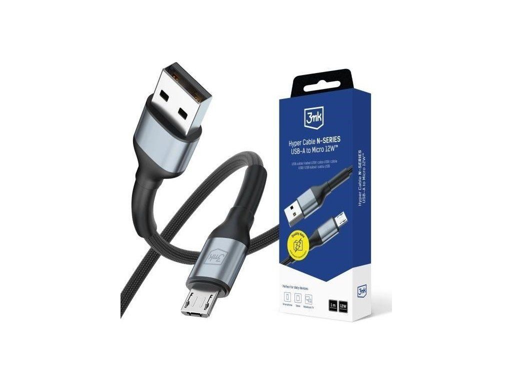 3mk kabel Hyper Cable N-SERIES A to Micro 1m 5V/2.4A 12W White / Black