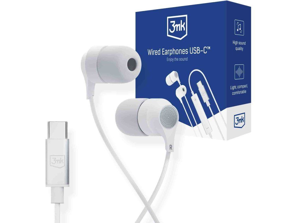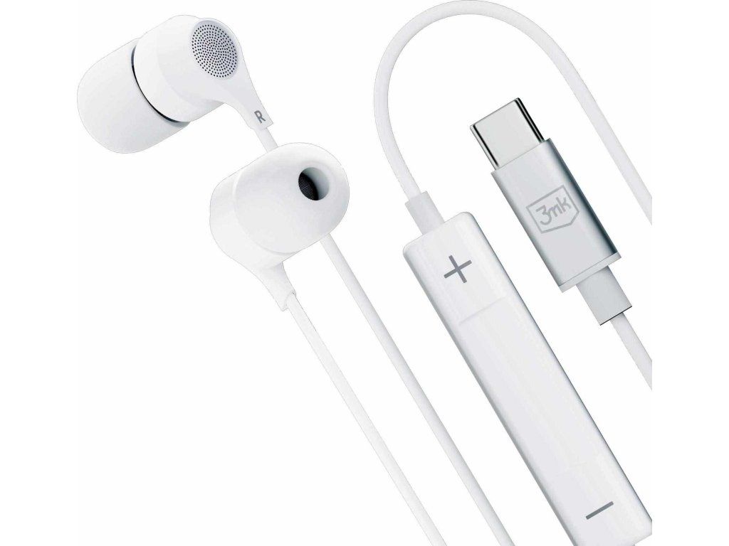 3mk sluchátka - Wired Earphones USB-C, bílá