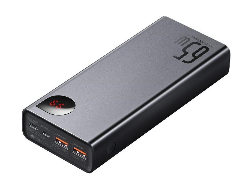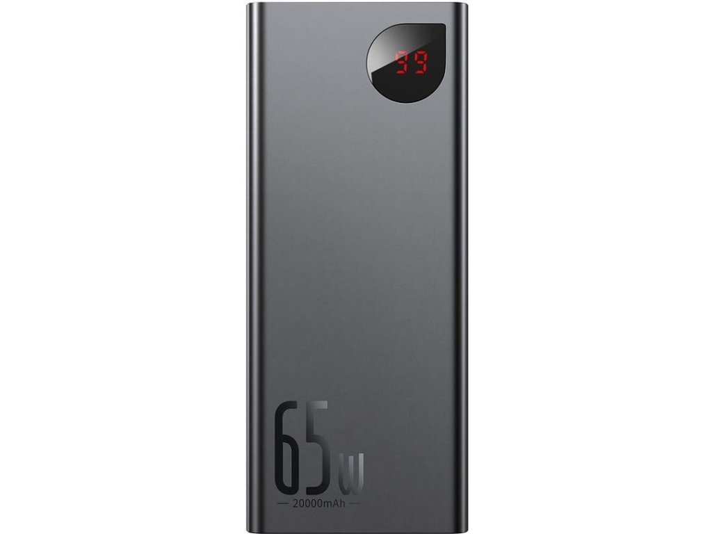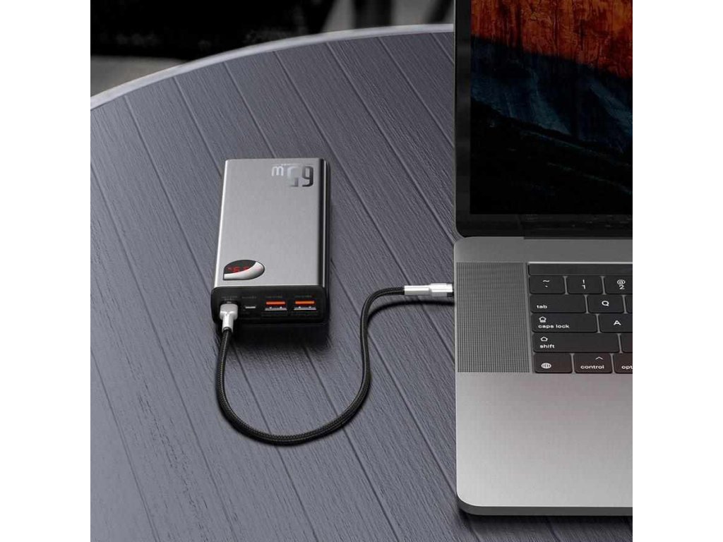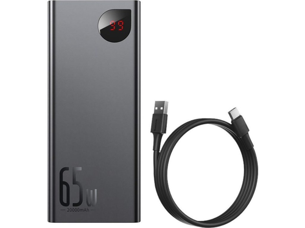 Baseus Adaman Metal Power Banka s digitálním displejem QC + PD 20000mAh 65W, černá + USB-A/USB-C kabel 30cm, černá