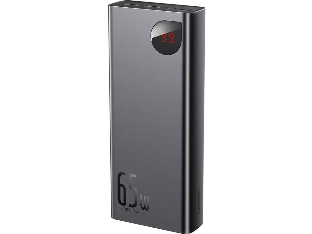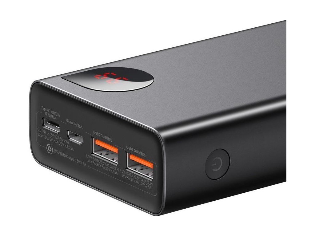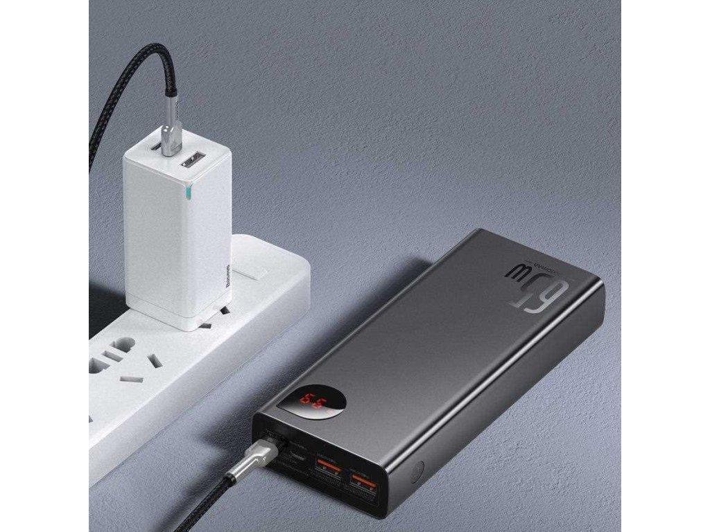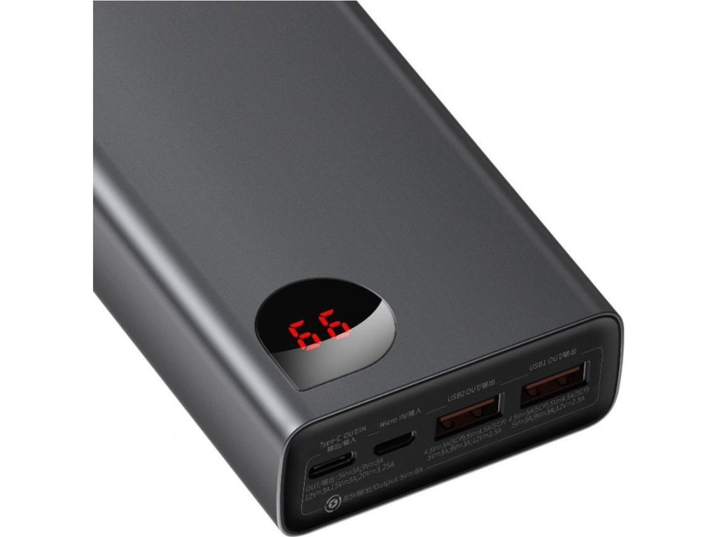 Baseus Adaman Metal Power Banka s digitálním displejem QC + PD 20000mAh 65W, černá + USB-A/USB-C kabel 30cm, černá