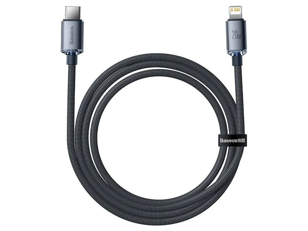 Dátový kábel Baseus Crystal Shine Series USB-C Lightning 20W 1,2 m, čierny