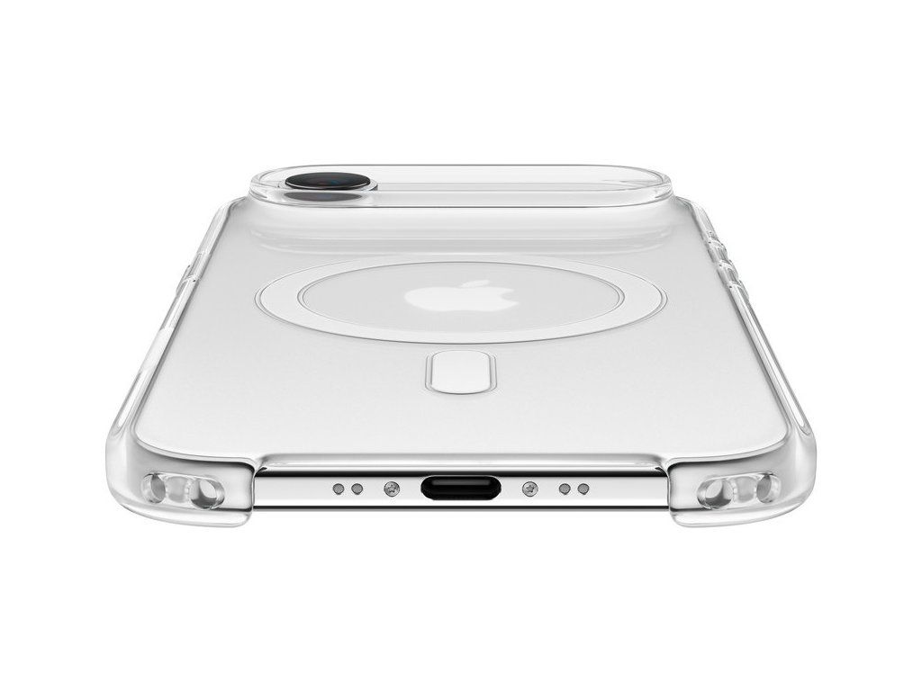 Tenhle ultratenký průhledný kryt nechává vyniknout mimořádně tenký design iPhonu Air. Zadní panel s tloušťkou 0,9 mm je zesílený polykarbonátovým rámečkem. Jemně zakalený vnitřek kontrastuje s vysoce lesklým vnějším povrchem. Tlačítka jsou nově navržená s důrazem na přesnou haptickou i zvukovou odezvu. Tenký a lehký kryt s MagSafe na iPhone Air je důkladně optimalizovaný tak, aby iPhone chránil před poškrábáním i při pádu.