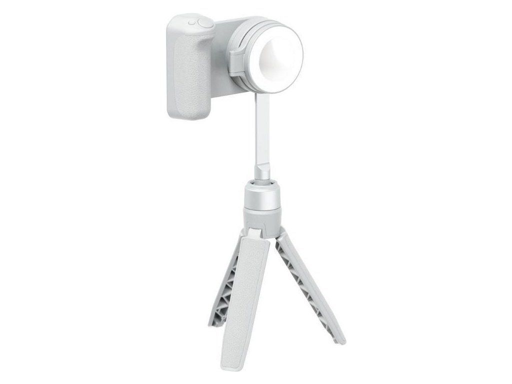 SnapPocket Light je malý svetelný LED kruh, ktorý sa magneticky pripája ku telefónu a/alebo systému SnapGrip. Ponúkne vám celkom štyri úrovne jasu. Svetlo môžete rôzne nakláňať, a dokonca aj úplne preklopiť, kým nedosiahnete uhol, ktorý potrebujete pre dokonalé osvetlenie scény. V strede svetla sa nachádza malé zrkadlo, ktoré vám umožní skontrolovať odraz a dokonale ho vycentrovať pre bezchybné selfie.SnapStand Mini statív a selfie tyč v jednom