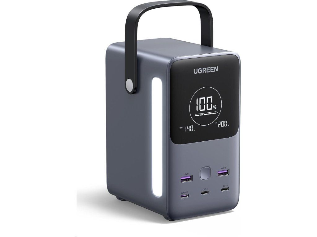 UGREEN powerbanka s rychlým nabíjením 48000mAh 5-port s displejem a LED, Li-ion, 300W, 3x USB-C, 2x USB-A, stříbrná