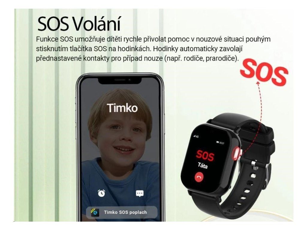 Tlačidlo SOS na detských hodinkách predstavuje rýchly a spoľahlivý spôsob, ako dieťa môže privolať pomoc v kritických situáciách. Stačí ho niekoľko sekúnd podržať a hodinky automaticky :