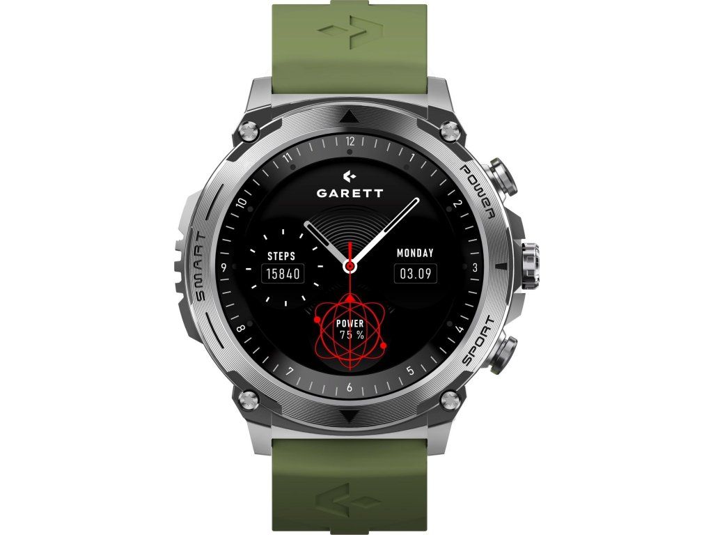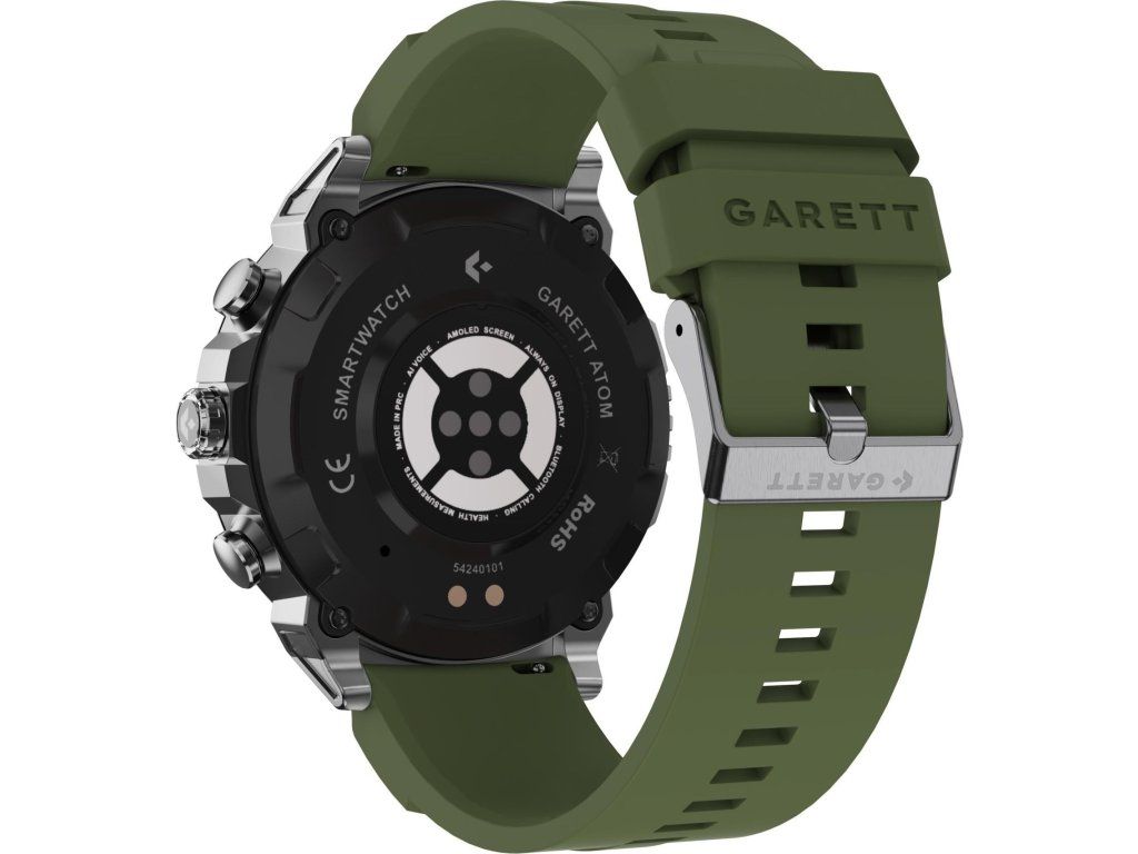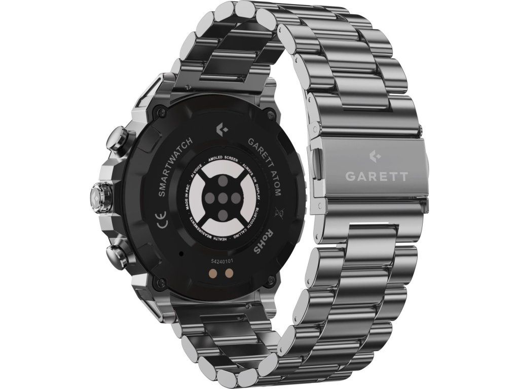 Hodinky Garett Atom majú 1,43" AMOLED displej s vysokým rozlíšením 466 × 466 px, ktorý zostáva dobre čitateľný aj na priamom slnku. Funkcia Always On Display diskrétne podsvieti ciferník, čo hodinkám dodáva elegantný vzhľad a umožňuje zobrazenie času na uzamknutej obrazovke.
