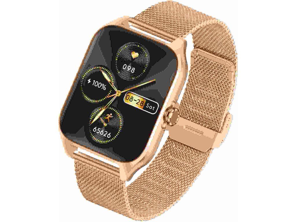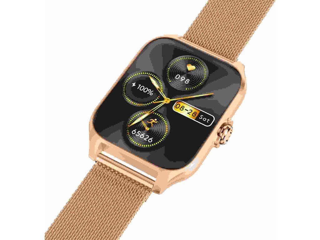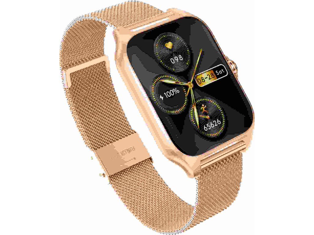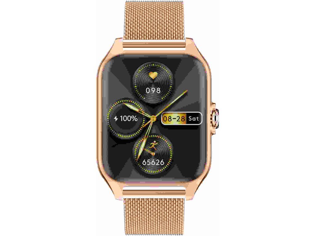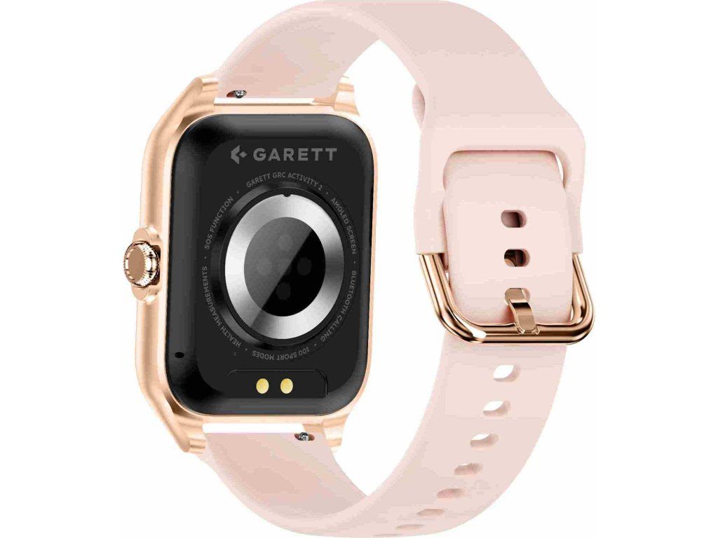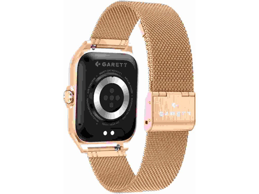- Balenie obsahuje: chytré hodinky Garett, zlatorůžový silikonový řemínek, zlatý kovový řemínek, nabíjecí kabel USB (bez zástrčky), příručku QSG