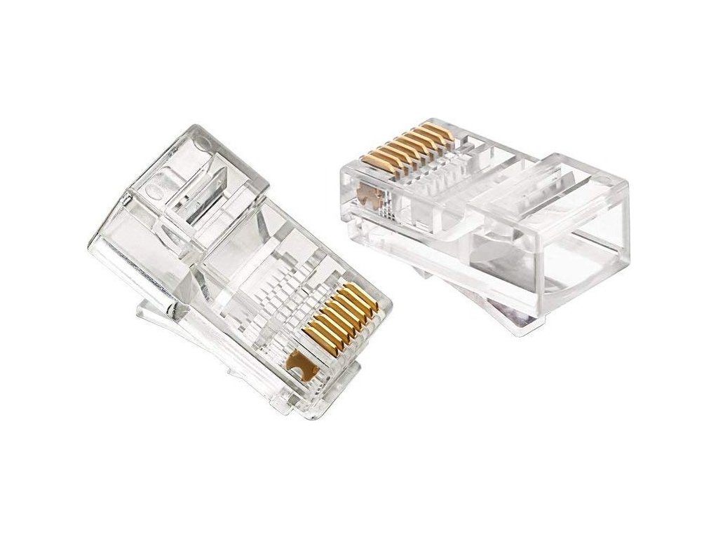 Konektor RJ45 nestíněný UTP CAT6 krimpovací pro kulaté kabely, balení 10ks - RJ45 8P8C 8 pinů - Nestíněný konektor + vložka - Vhodné na lanko a drát Cat6 - 2 x prong - Prodejní balení 1 ks (větší balení po 100ks) - Material kontaktů: Phosphor