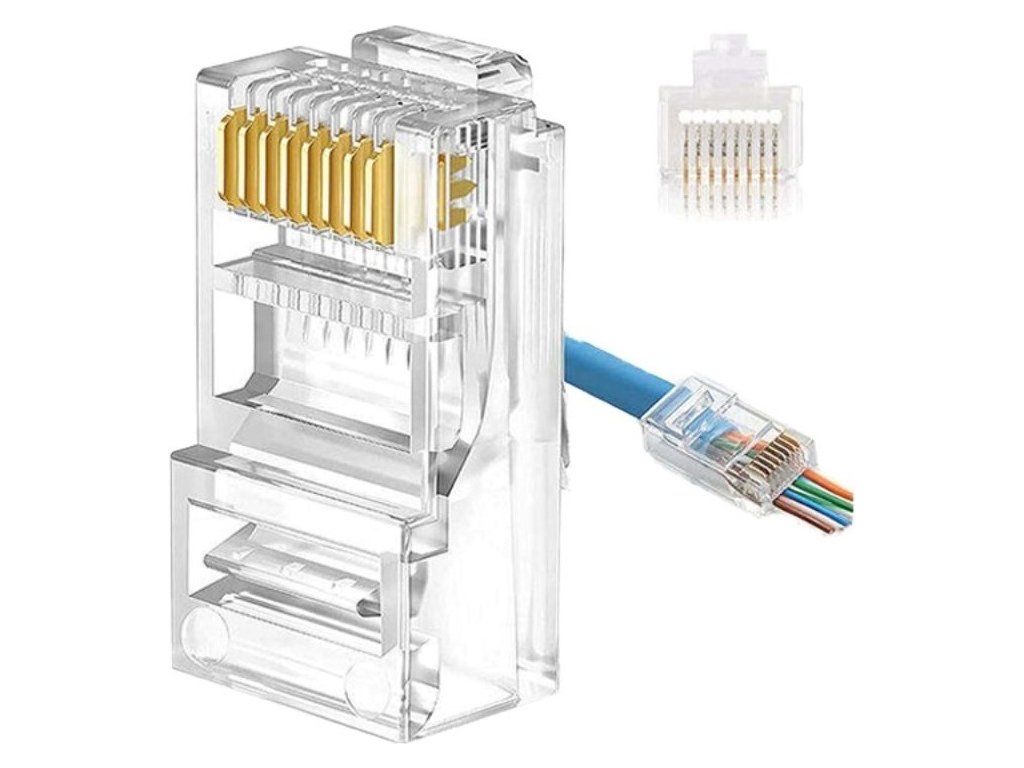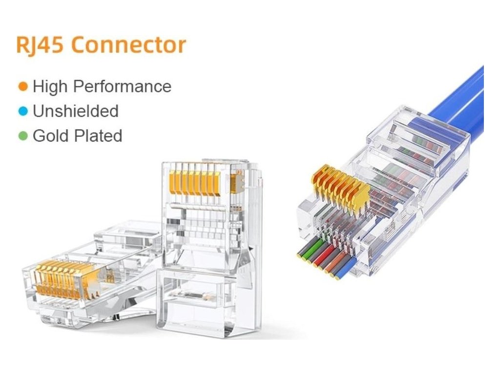 Modulárny RJ45 konektor od PremiumCord (8P8C) pre kábly kategórie Cat6 je navrhnutý pre čisté a spoľahlivé ukončenie sieťových káblov. Tento prechodový konektor uľahčuje krimpovanie: vodiče prechádzajú cez konektor, takže je možné ľahko overiť ich poradové miesto a zabezpečiť správny kontakt. Transparentné telo umožňuje vizuálnu kontrolu zapojenia vodičov, čím minimalizuje chyby počas inštalácie.