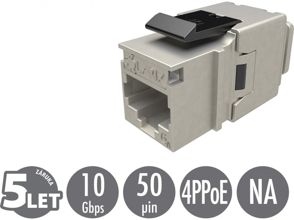 Rychlozařezávací keystone Solarix CAT6A STP SXKJ-10G-STP-BK-NA Component Level a 4PPoE certifikace