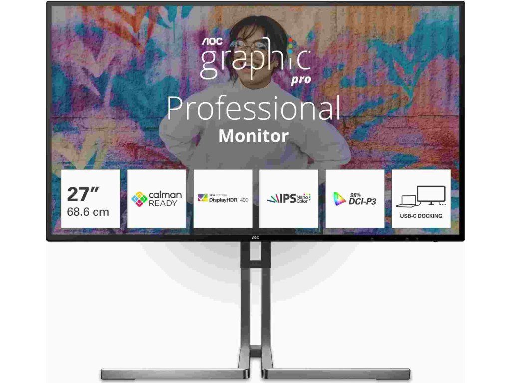 AOC Graphic Pro U27U3CV poskytuje výnimočnú presnosť farieb ihneď po vybalení vďaka hardvérovej kalibrácii dosahujúcej Delta E