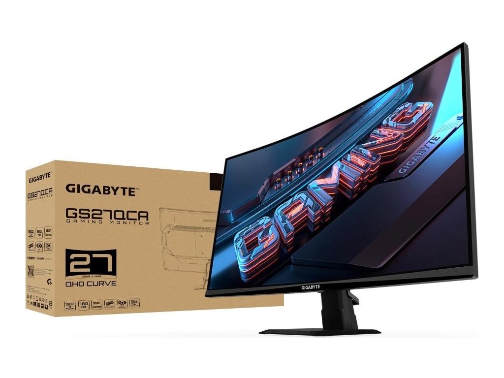 GIGABYTE LCD - 27" Gaming monitor GS27QCA, Prohnutý VA 1500R, 2560x1440 QHD, 180Hz, 5000:1, 250cd/m2, 1ms, 2xHDMI, 1xDP
