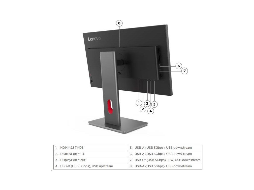 | Špeciálne funkcie | HDR10 Compliance Výrobné kalibrácie: Priem. Delta E, Podpora Lenovo ThinkColour (Lenovo Accessories and Display Manager) Lenovo ThinkColour podporuje Windows 10 & 11, Mac OS (funkcie sa líšia). Lenovo Accessories and Display Manager je bývalé Lenovo Display Control Center. KVM Switch (s eKVM) LDFM (Lenovo Display Fleet Manager) Zrkadlo Power Button Multi-sync Prirodzené nízke modré svetlo Smart Power |
