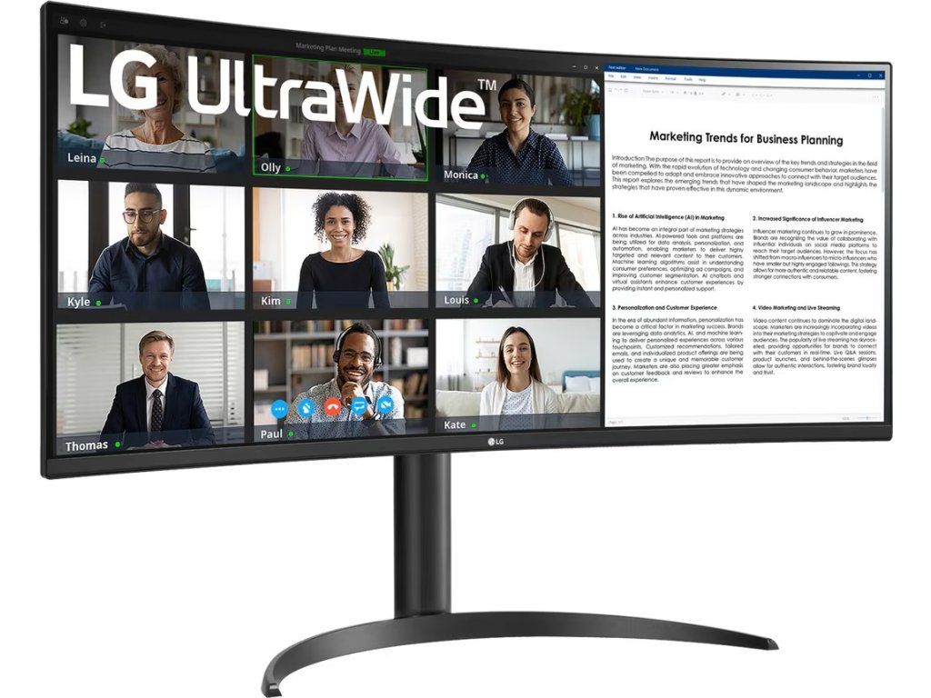 UltraWide™ QHD (3440 × 1440) s zakrivením 1800R a pomerom strán 21:9 je skvelý na prácu, pretože umožňuje zobraziť viac programov naraz.