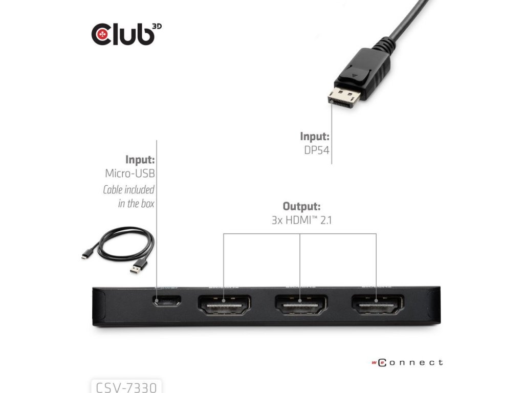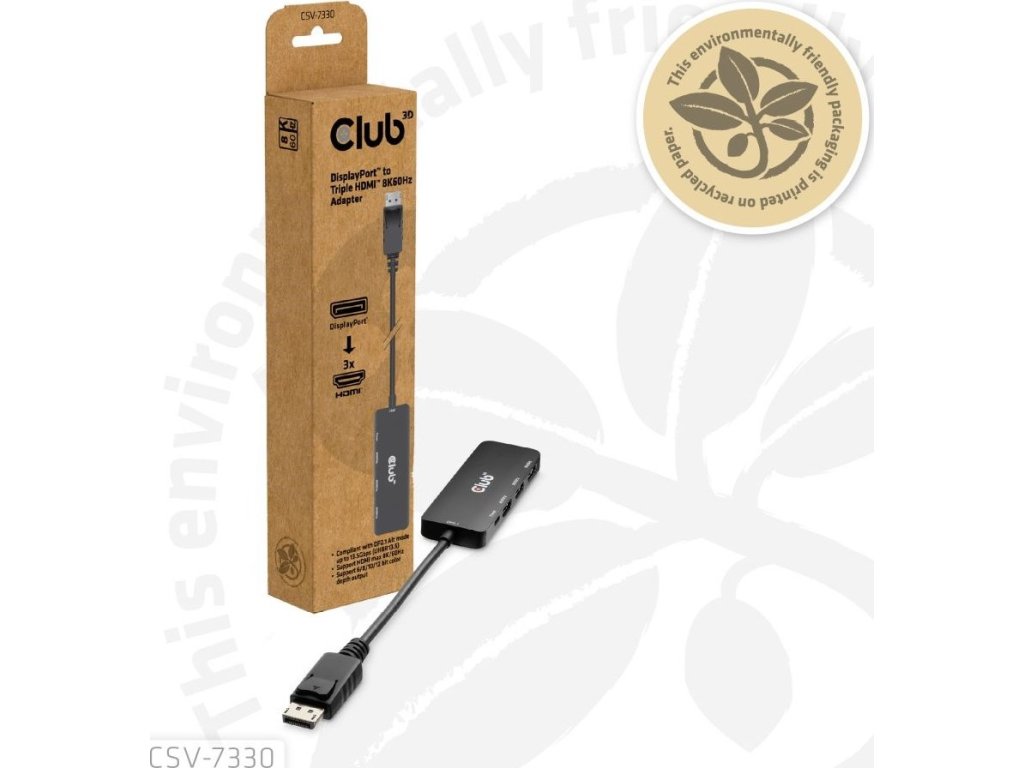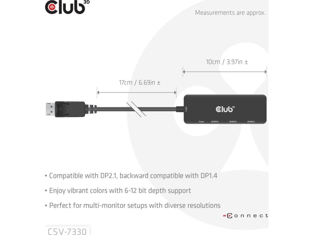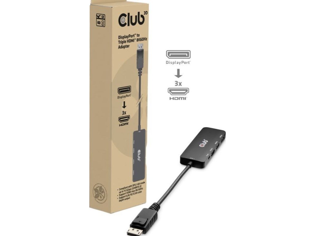 Club3D hub MST (Multi Stream Transport) DisplayPort 1.4 na 3x HDMI 8K60Hz (M/F)