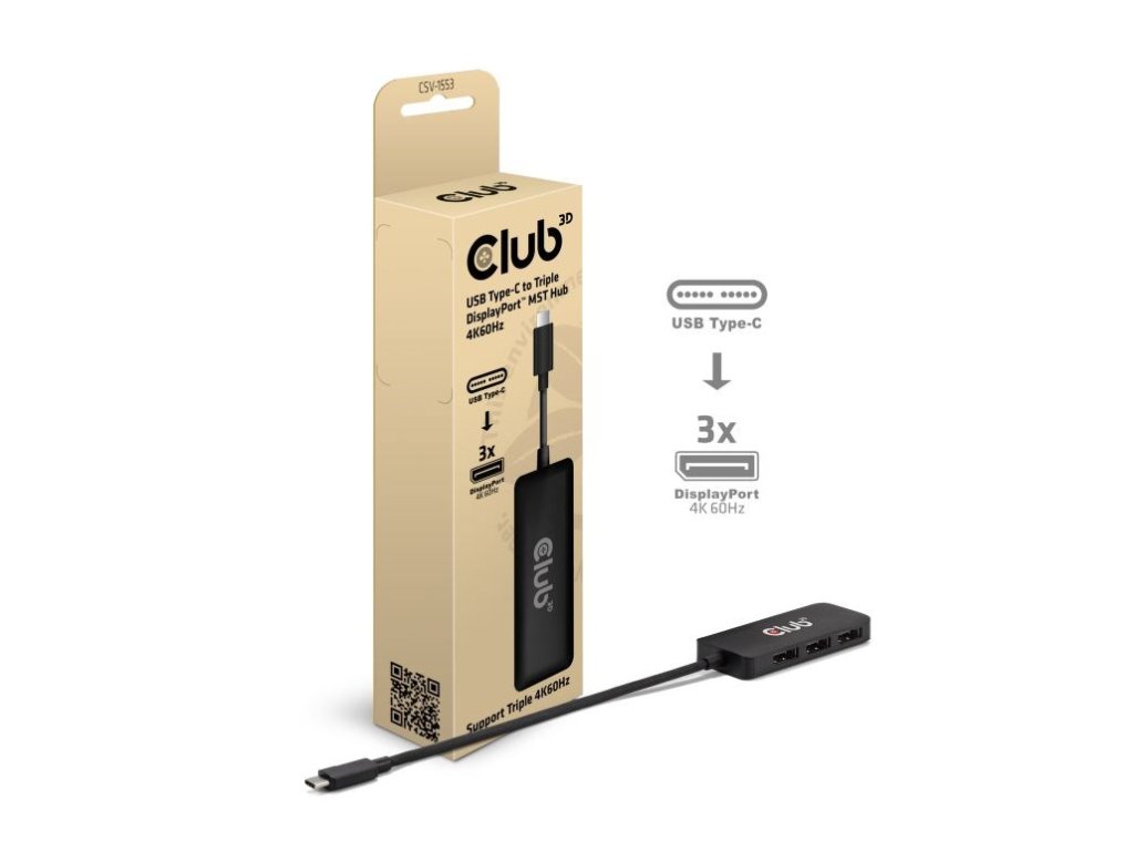 Club3D hub MST USB-C na 3xDisplayPort, Single: 8K30Hz, Triple: 4K60Hz