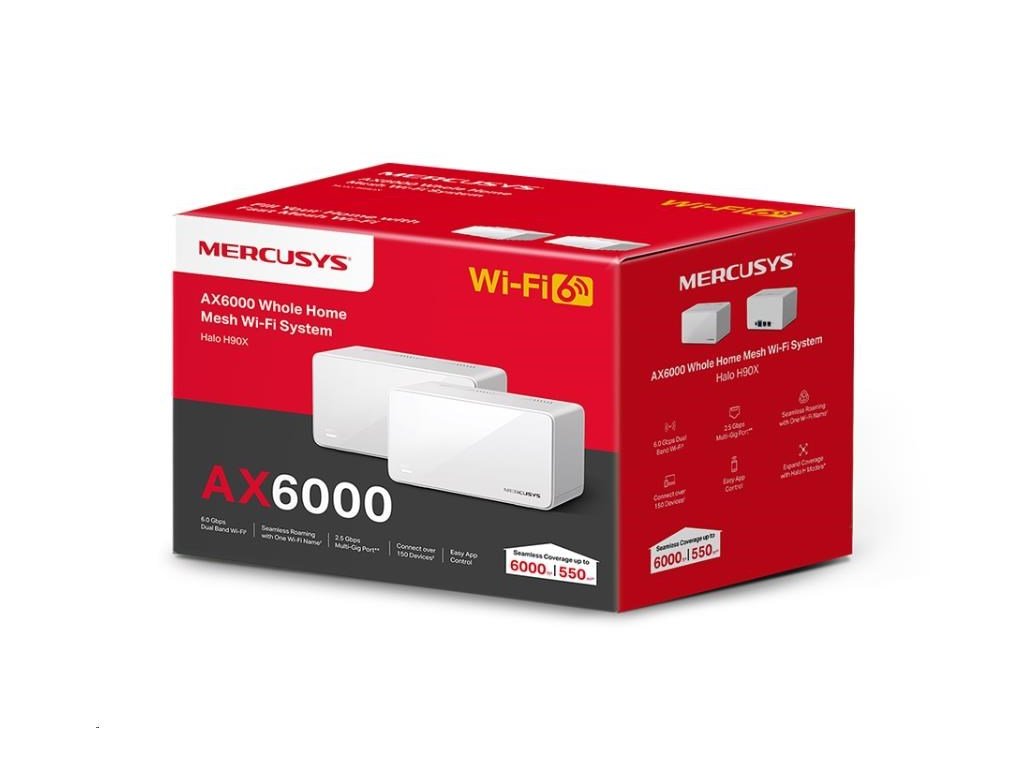MERCUSYS Halo H90X(2-pack) WiFi6 Mesh (AX6000,2,4GHz/5GHz,1x2,5GbELAN/WAN,2xGbELAN/WAN)