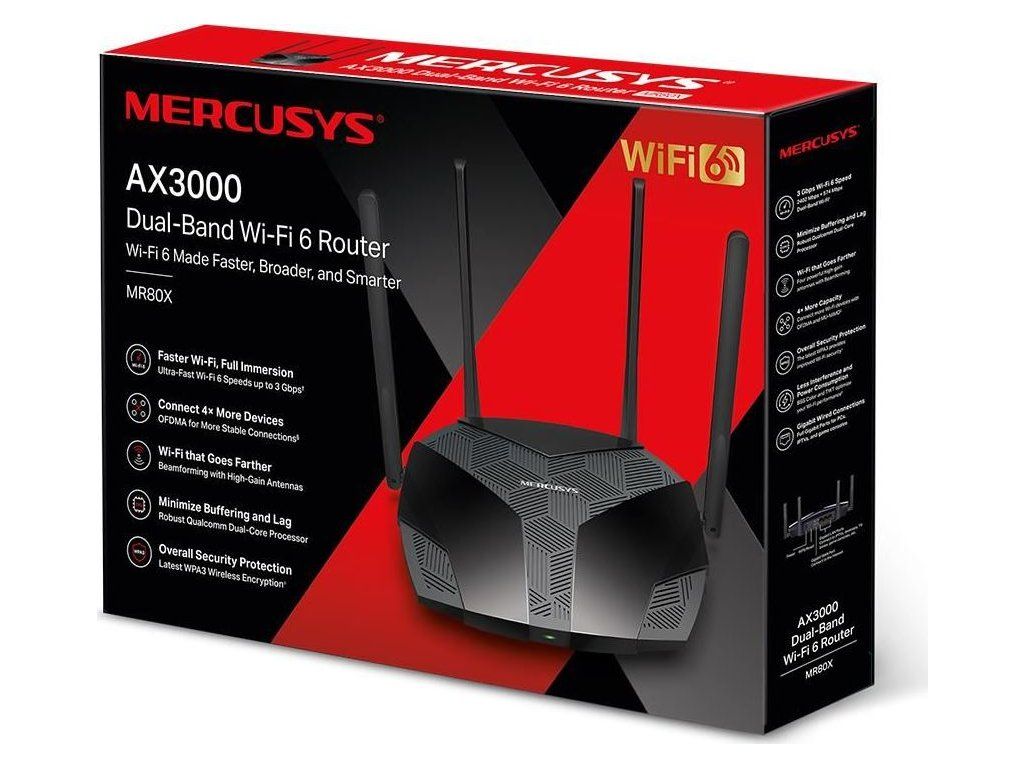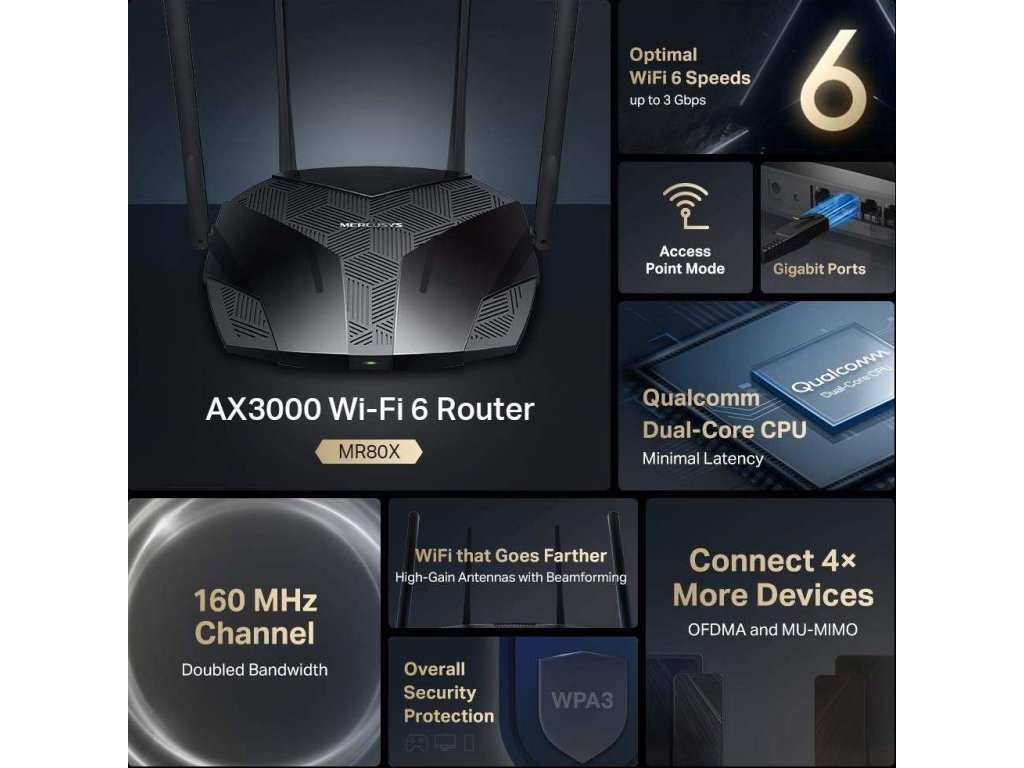 MERCUSYS MR80X WiFi6 router (AX3000,2,4GHz/5GHz, 3xGbELAN,1xGbEWAN)