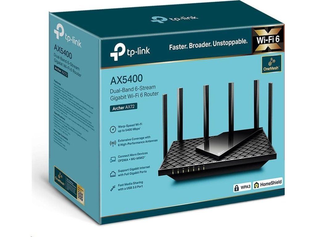 TP-Link Archer AX72 OneMesh/EasyMesh WiFi6 router (AX5400, 2,4GHz/5GHz, 4xGbELAN,1xGbEWAN, 1xUSB3.0)