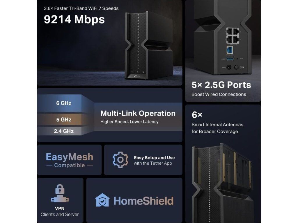 TP-Link Archer BE550 OneMesh/EasyMesh WiFi7 router(BE9300,2,4GHz/5GHz/6GHz,1x2,5GbEWAN,4x2,5GbELAN,1xUSB3.0)