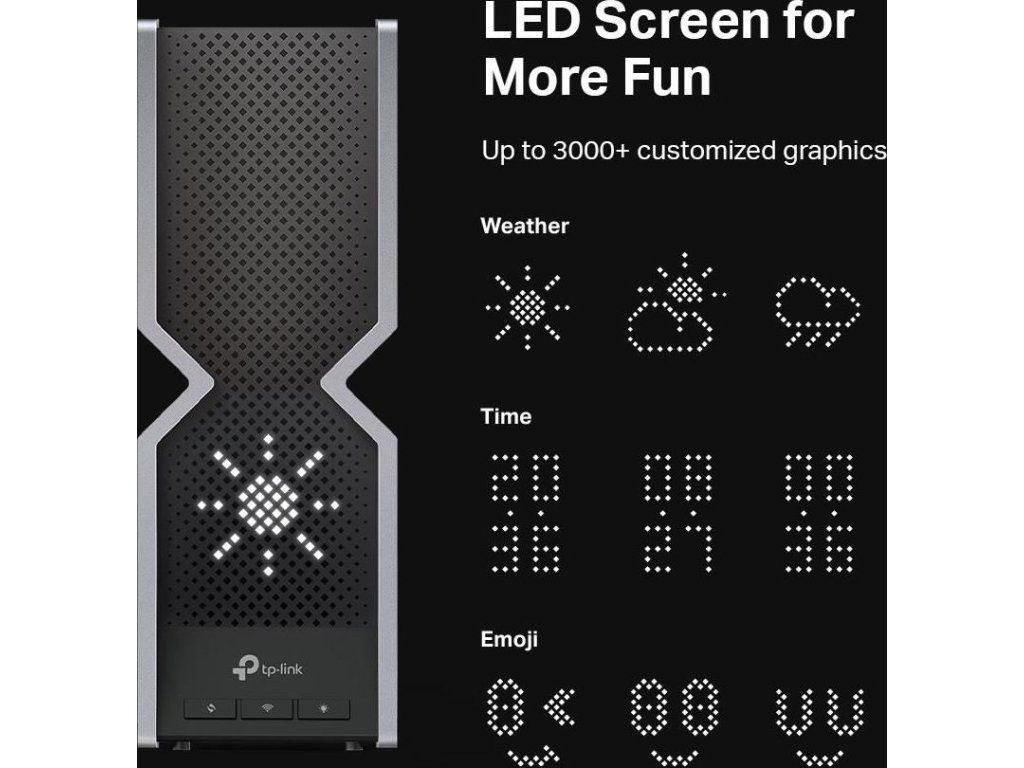 - Jednoduché a zábavné používanie: Všetky nastavenia môžete pohodlne spravovať pomocou aplikácie Tether a na LED displeji si prehliadať čas, počasie a ďalšie informácie v príťažlivom grafickom štýle.