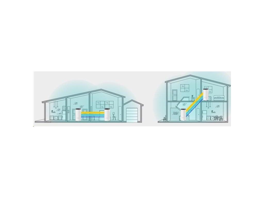 | Dosah WiFi | Rodinné domy 3-4 izby (3-pack) TL-Dek od TP-Link Mesh technológia Voliteľná Ethernetová spätná väzba spolupracuje na prepojení jednotiek Deco pre bezproblémové pokrytie 2× antény (vnútorné) Viacero antén tvorí poľný zosilňovač signálu na pokrytie viacerých smerov a veľkých plôch Beamforming Sústreďuje bezdrôtovom signál na klientov na rozšírenie WiFi dosahu |