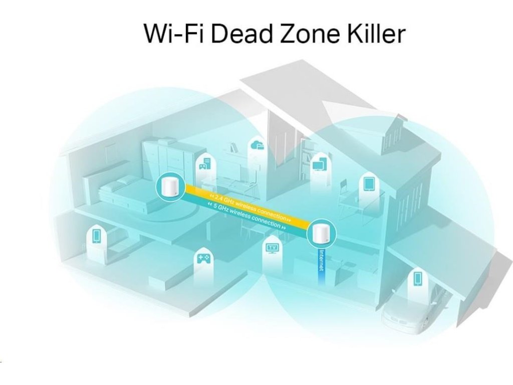 - Jedna zjednotená sieť: Viaceré jednotky tvoria domácu sieť, ktorá automaticky vyberie najlepšie spojenie, keď sa pohybujete po domácnosti.