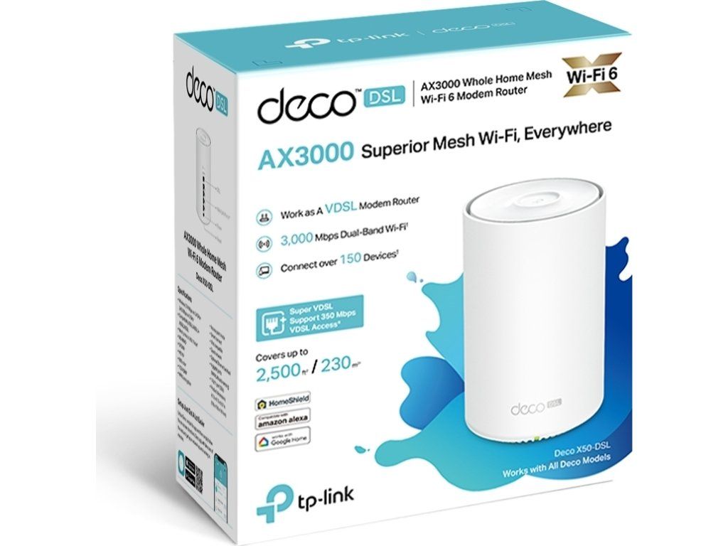TP-Link Deco X50-DSL WiFi6 Mesh (AX3000,2,4GHz/5GHz,4xGbELAN/WAN,1xDSL Port (VDSL2/ADSL2+/ADSL2/ADSL)
