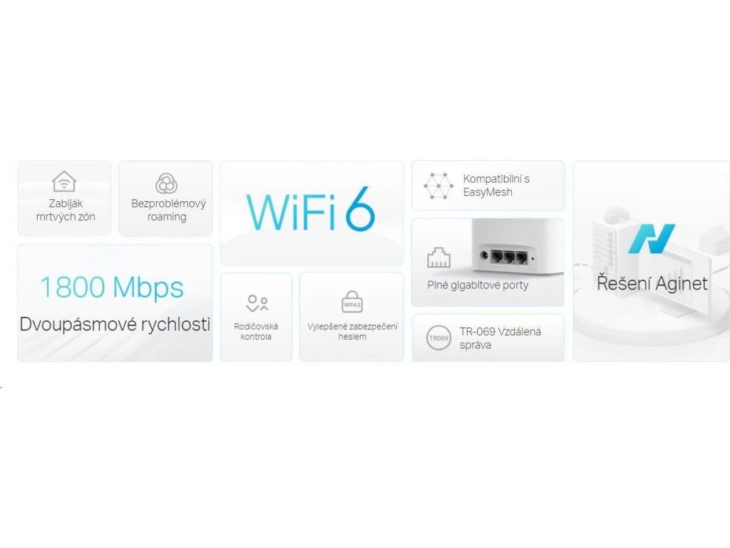 TP-Link HX220(1-pack) EasyMesh WiFi Mesh (ISP) (AX1800, 2,4GHz/5GHz, 2xGbELAN, 1xGbELAN/WAN)