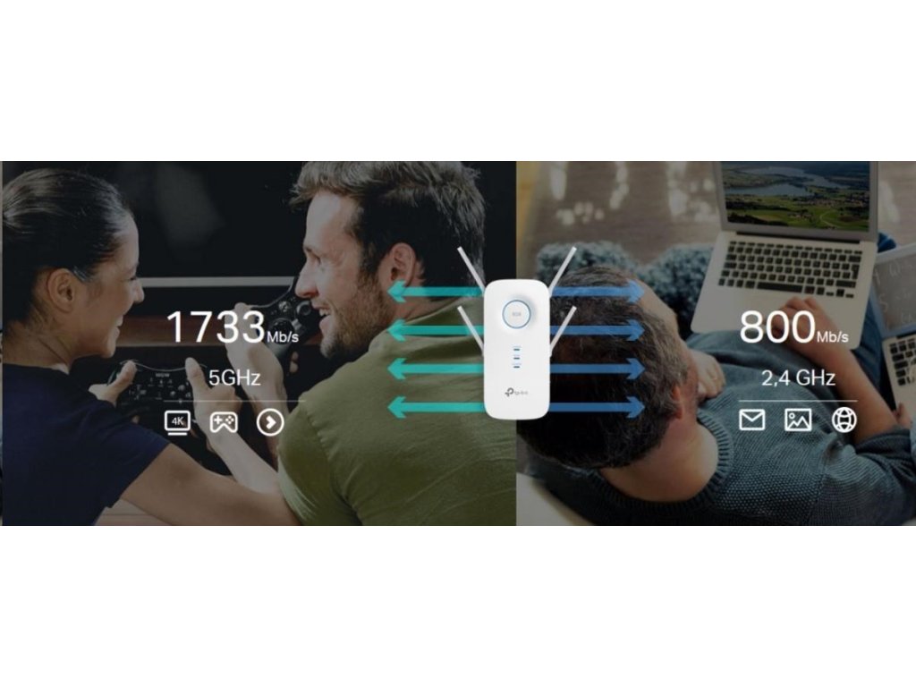 Vďaka štyrom externým dvojpásmovým anténam vytvára extender RE650 stabilné bezdrôtové pripojenie ku ľubovoľnému Wi-Fi routeru a zvyšuje pokrytie siete až o 1300 m2. Dvojjadrový procesor s taktom 880 MHz zabezpečuje pre Wi-Fi maximálny výkon, takže vaše chytré telefóny a tablety budú stále pripojené, aj keď sa budete pohybovať po celom dome.