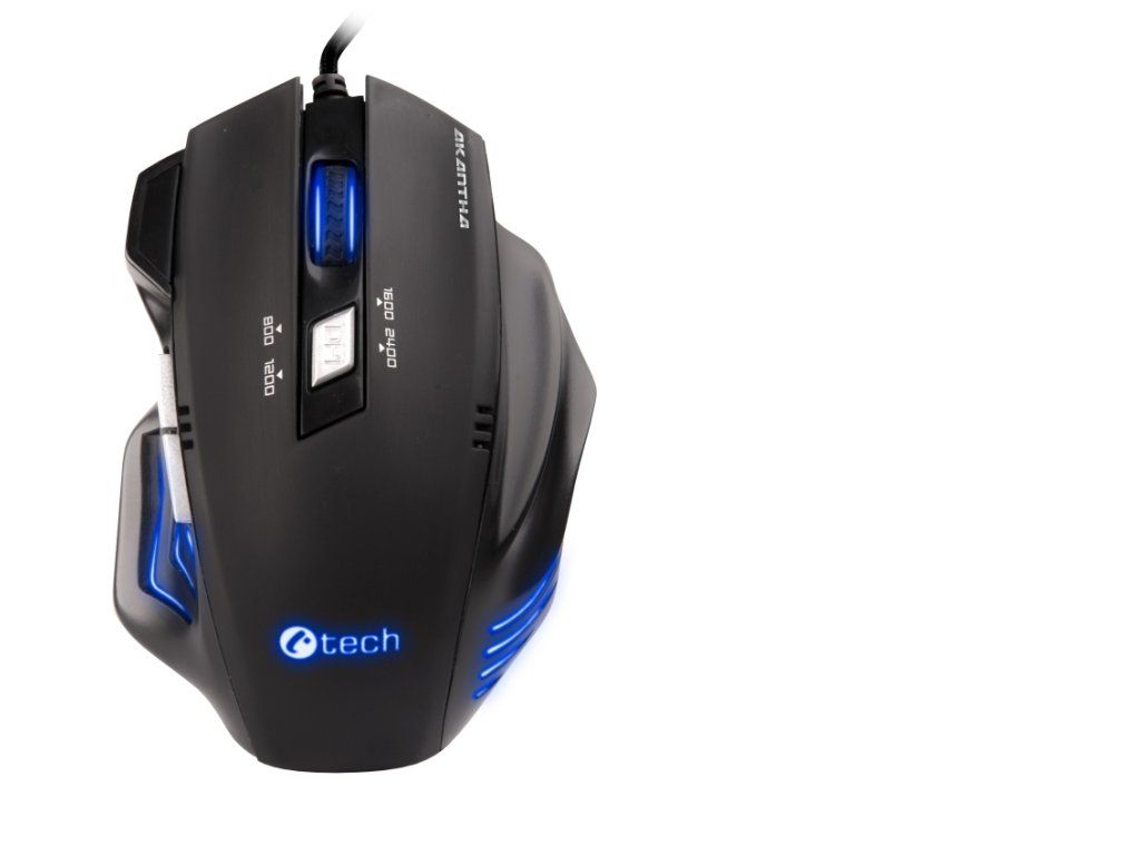 Nová herní myš C-TECH AKANTHA se ve Vašich rukou promění ve skutečnou zbraň. První, co uživatele zaujme, je perfektní design a skvělé ergonomické tvarování myši s pogumovaným povrchem. Myš je osazena optickým senzorem o rozlišení 2400DPI, které lze ve 4 úrovních měnit pomocí DPI tlačítka. Myš nabídne celkem 6 tlačítek, kterým lze ve většině PC her přiřazovat jednotlivé herní funkce. Skvělému designu sekunduje velmi elegantní modré podsvícení myši.