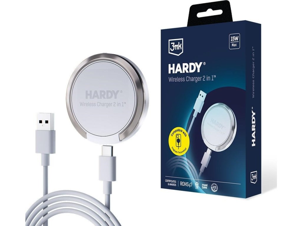 3mk bezdrátová nabíječka - Hardy Wireless Charger 2in1 s funkcí stojánku, 15w, bílá