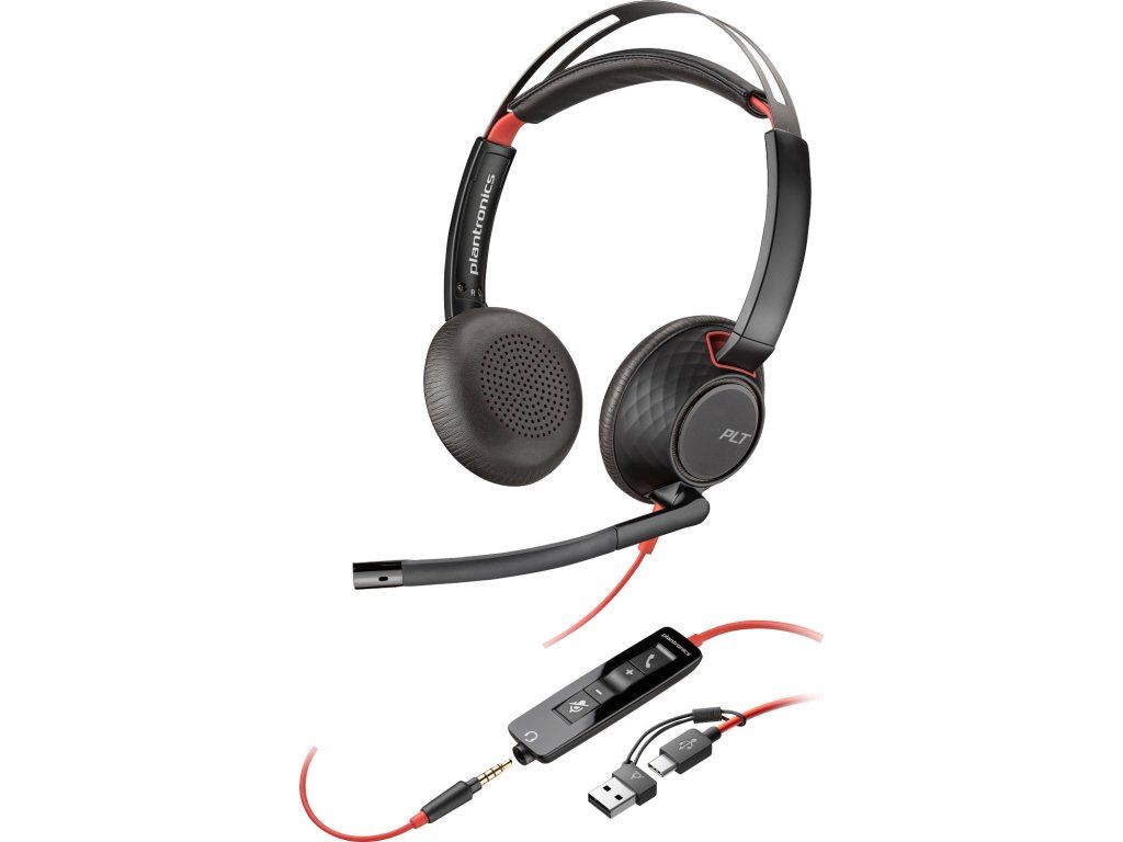 Stereofónna náhlavná súprava Poly Blackwire 5220 USB-C + 3,5 mm konektor + adaptér USB-C/A