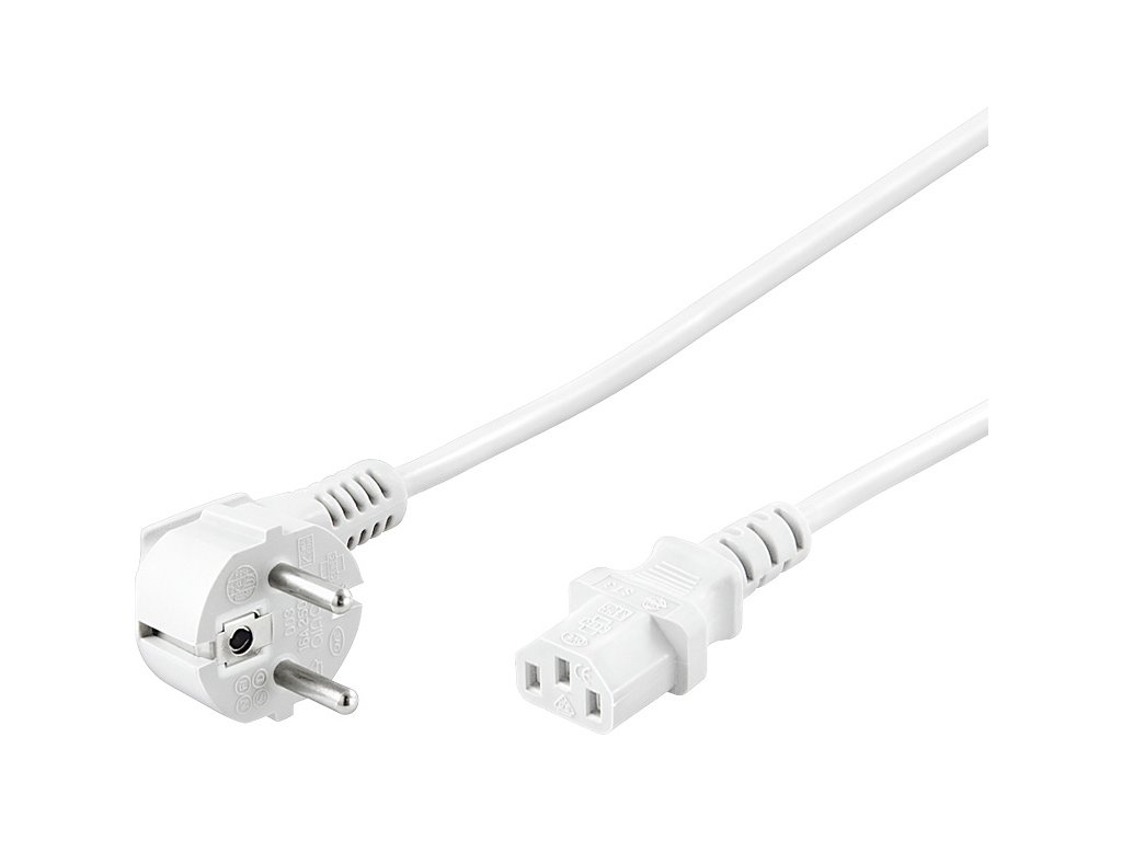 Napájecí kabel v bílem provedení pro počítač nebo monitor. Třížilový kabel je zakončený standardní přístrojovou zástrčkou.