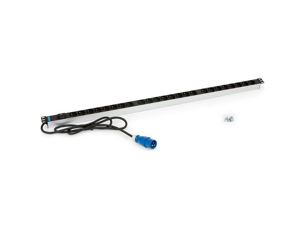 TRITON 19" rozvodný panel 24x230V zásuvka, 2m kabel,16A IEC60309, černý