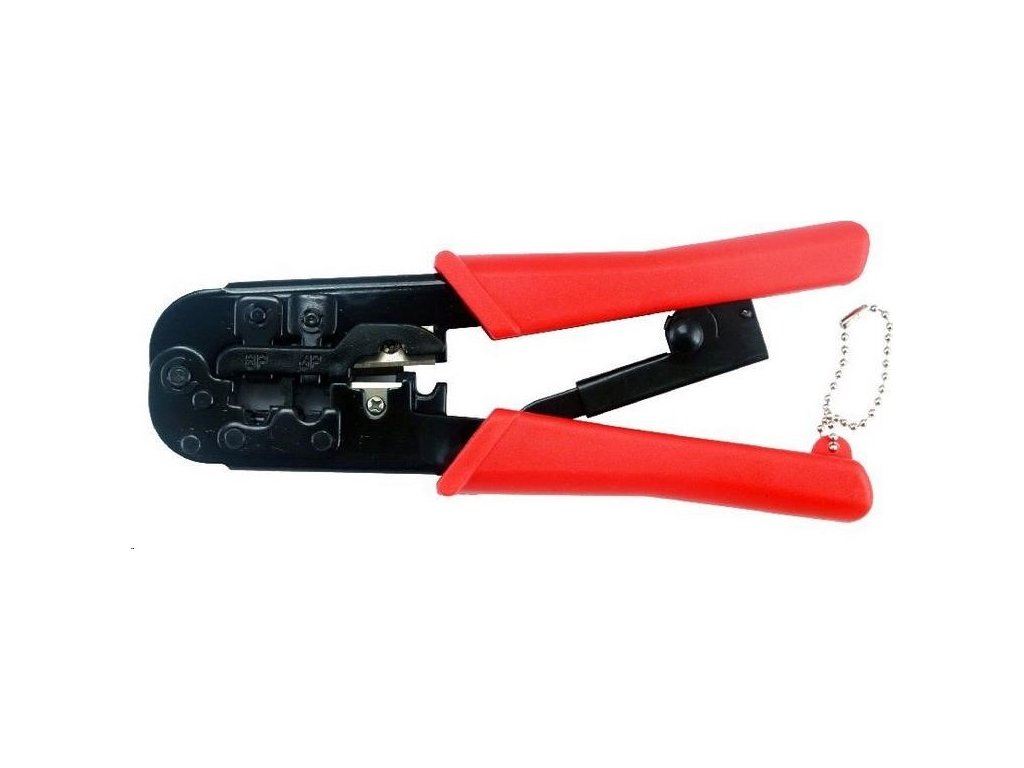 Univerzálny modulárny lisovací nástroj Vhodný pre všetky modulárne zástrčky 8P8C, 6P6C a 6P4C Praktický račňový mechanizmus - pre spoľahlivé výsledky lisovania.