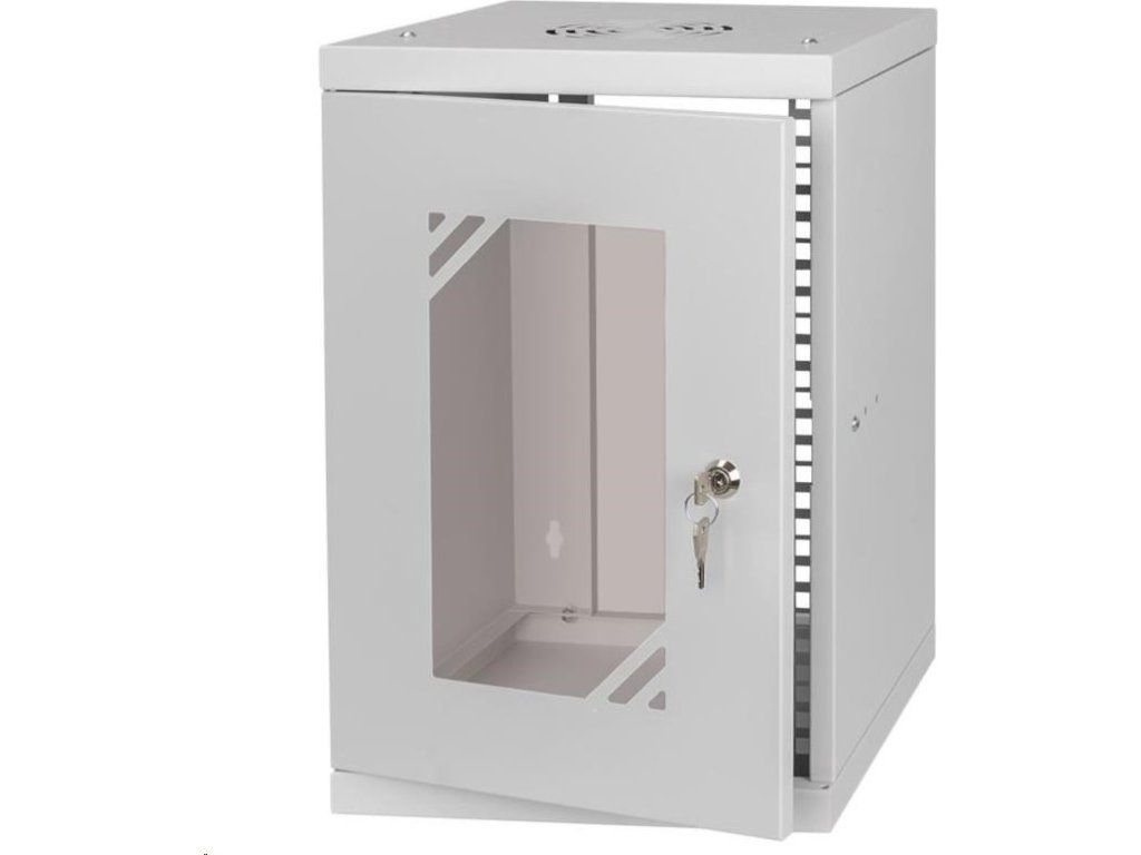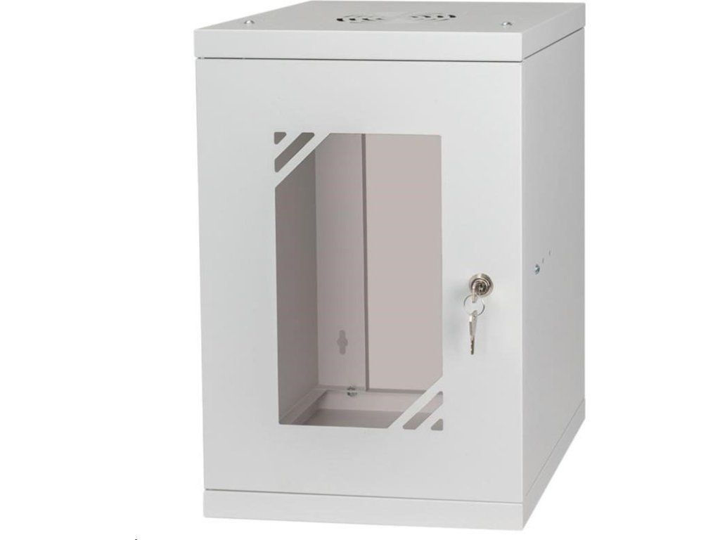 LEXI 10" nástenná skriňa Basic 9U, šírka 292 mm, hĺbka 300 mm, sklenené dvere, bez zadnej steny, sivá