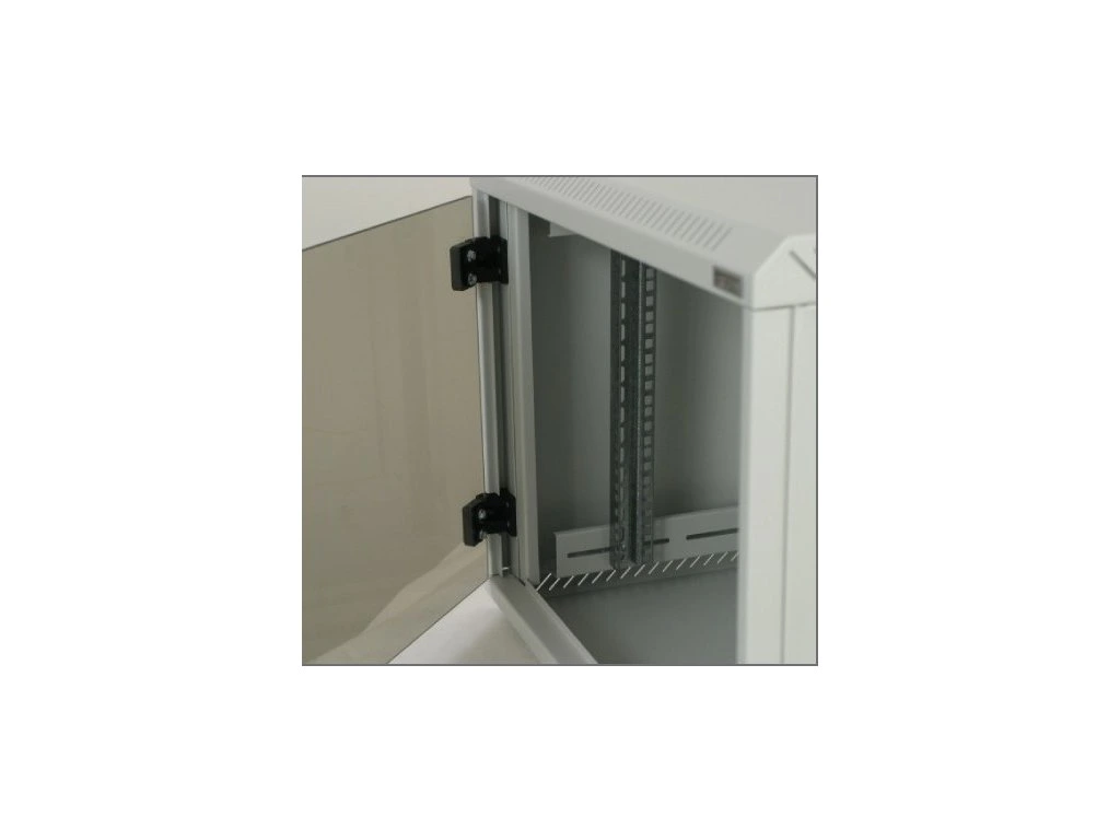 - 19" zariadenia sú nainštalované na vertikálnych koľajniciach, ktoré sa dajú plynule prispôsobiť hĺbke tela skrine. Perforácia zabezpečuje prirodzenú cirkuláciu vzduchu a chladenie komponentov.